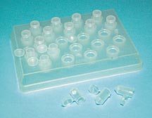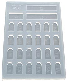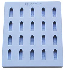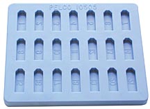 21 Cavity EM Embedding Mold: Single pretrimmed end with consecutive numbering, blue silicone rubber.Number of Cavities: 21 Numbering: 1-21Mold Size: 74 x 61 x 6mm thick |